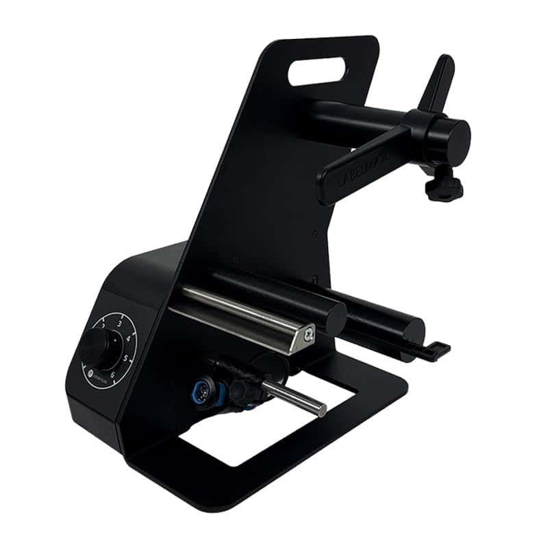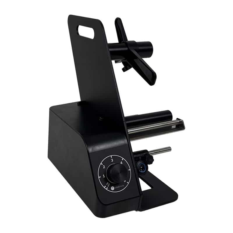 Dispenserul de etichete este echipat cu suporturi pentru miezuri de 35 mm care acceptă toate miezurile de la 38 la 76 mm.