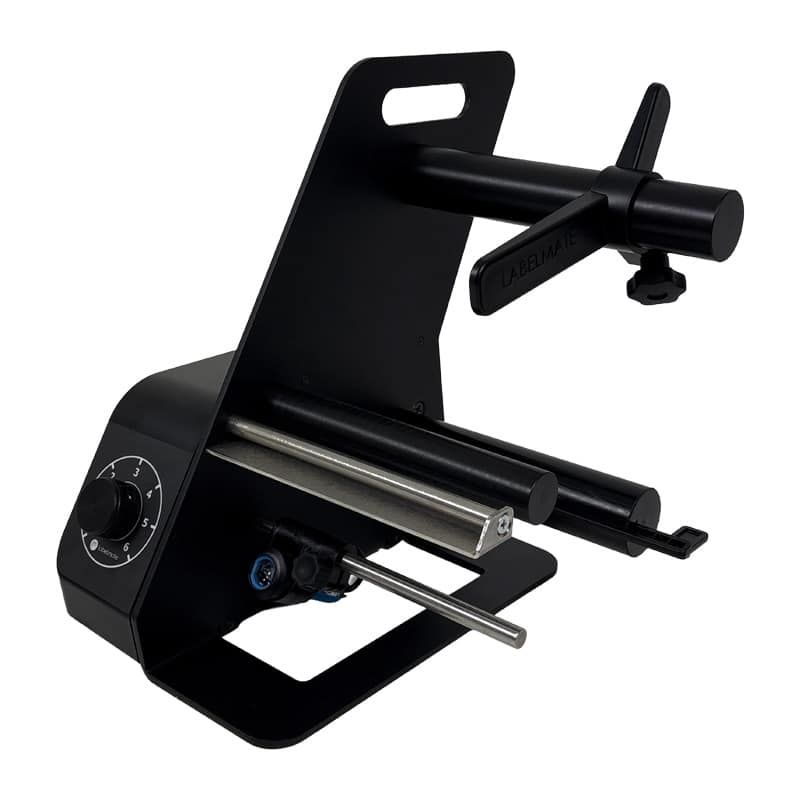 Dispenserul de etichete este echipat cu suporturi pentru miezuri de 35 mm care acceptă toate miezurile de la 38 la 76 mm.